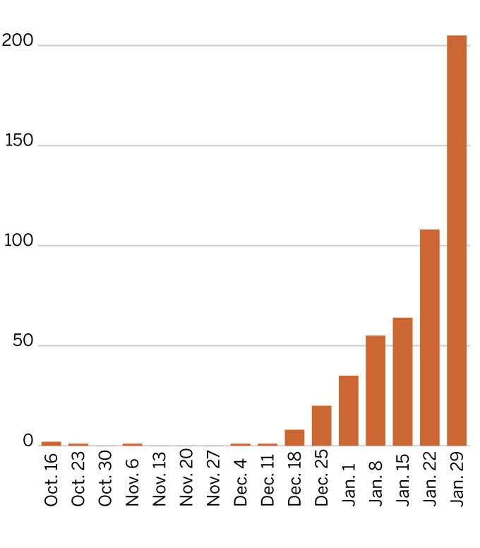 The number of influenza cases reported to the health department has climbed during the past seven weeks.