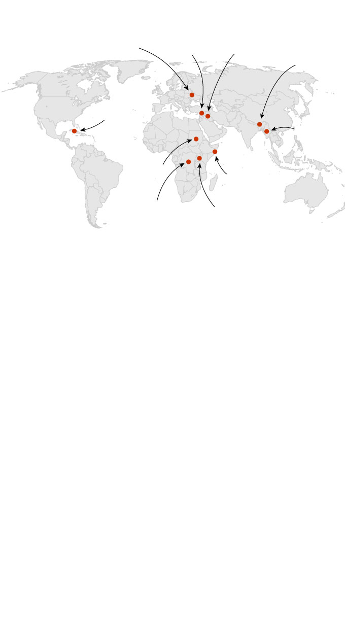 Countries of origin and number of refugees, 2007 to 2016
