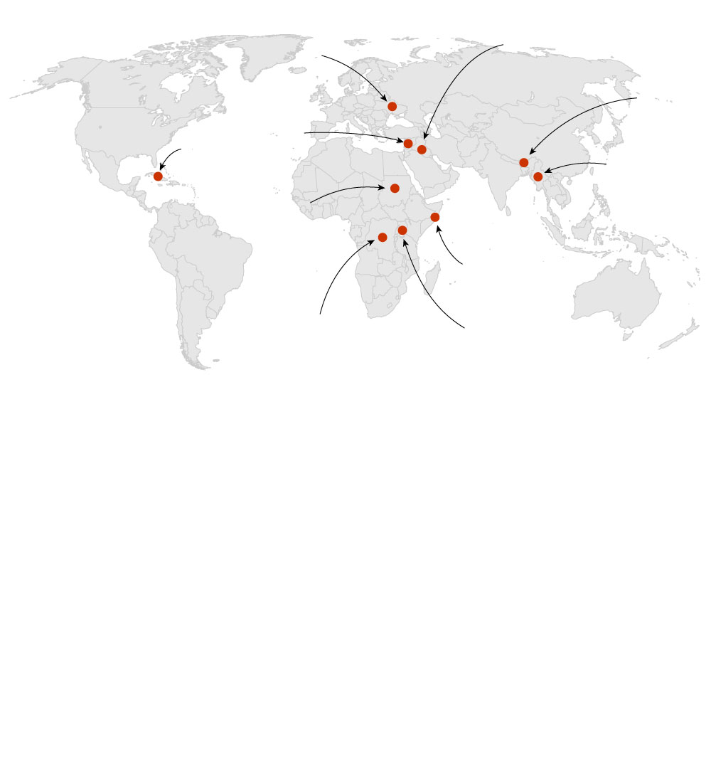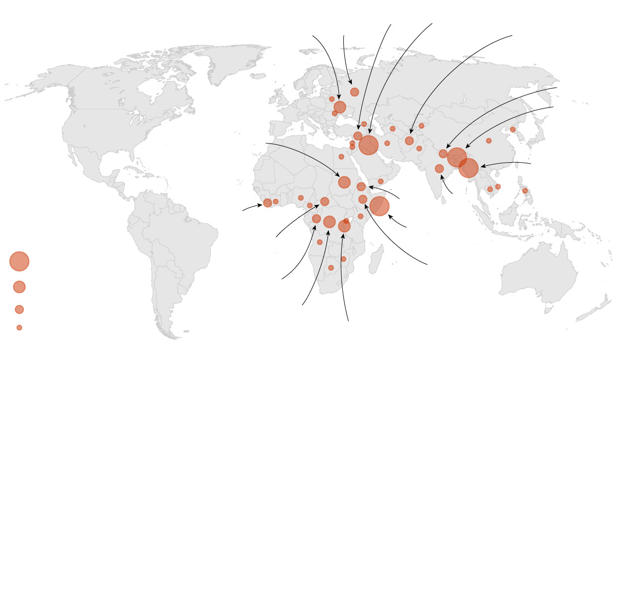 (Countries with 10 or more refugees are labeled)